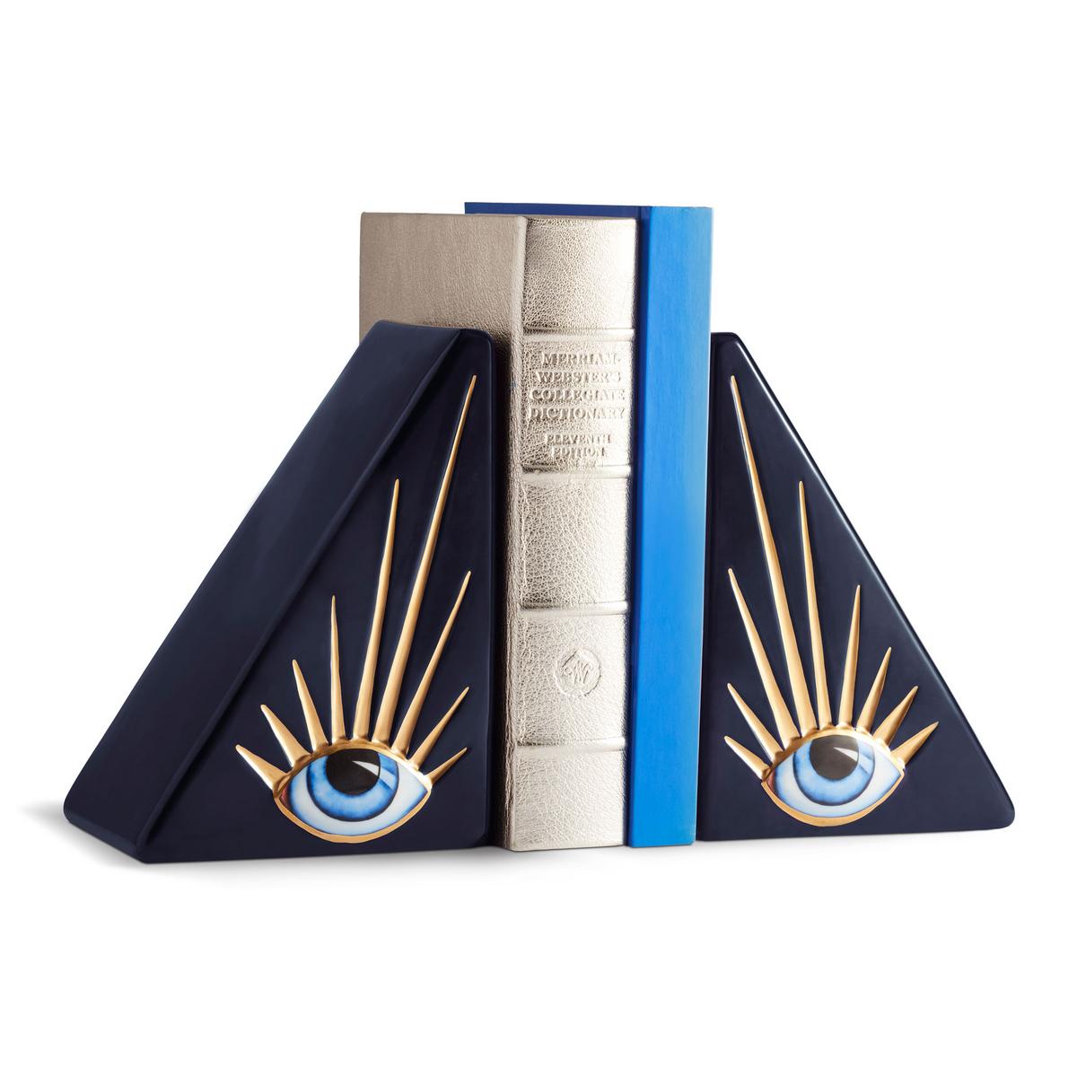The "Lito" bookends by L'Objet are characterised by a particularly elegant eye design in bold colours. Besides the function for order in book collection, the triangular bookends are also eye-catching decorative pieces for the shelf. The "Lito" bookends by L'Objet are made of fine porcelain.