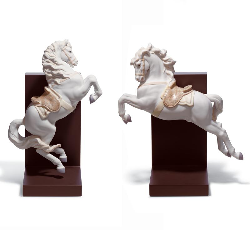 Lladró’s “Horses” bookends make the perfect present for all horse-lovers: Two breathtaking equestrian sculptures made of finest porcelain decorate these mahogany bookends from Lladró.