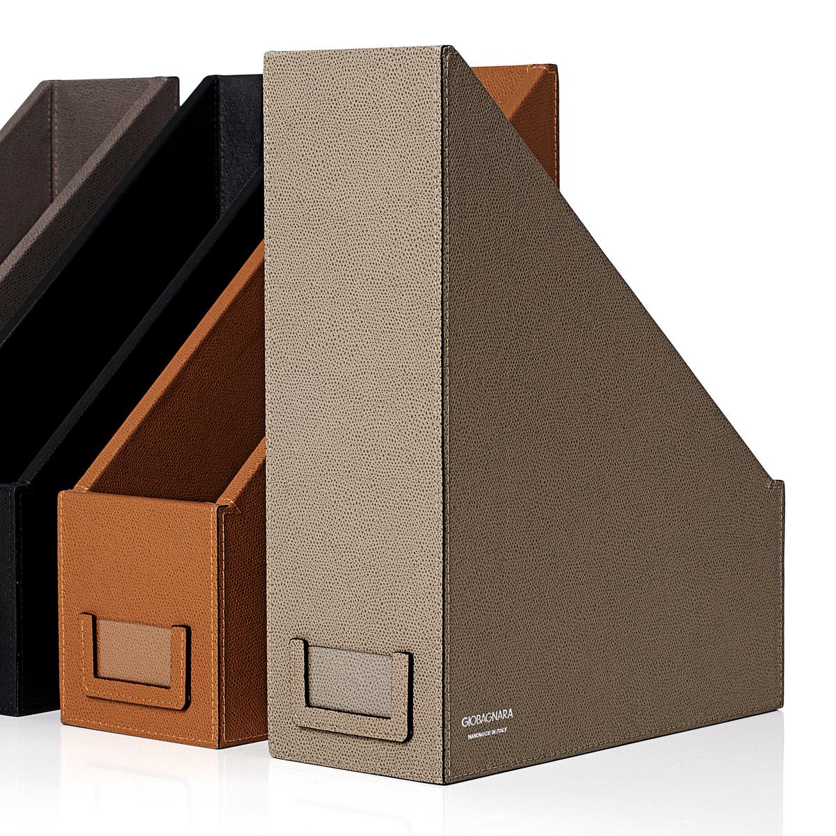 The "Phil" file holder by GioBagnara is the perfect complement to the "Phil" office accessories. Classic and elegant, it matches any desk style and is an essential storage space for magazines or paper. There is a file name holder on both sides.