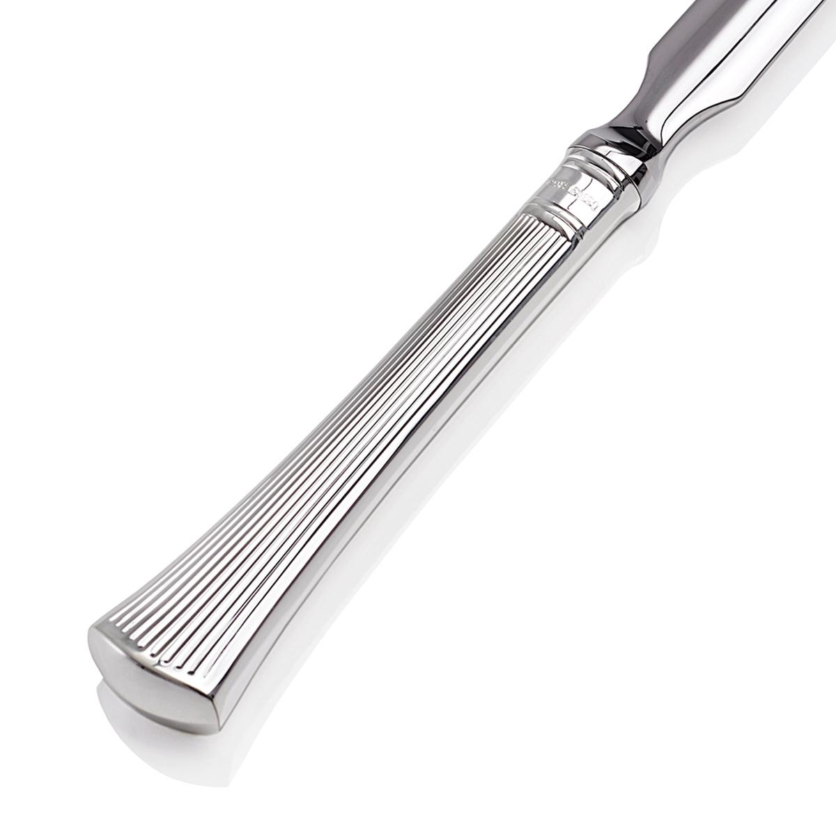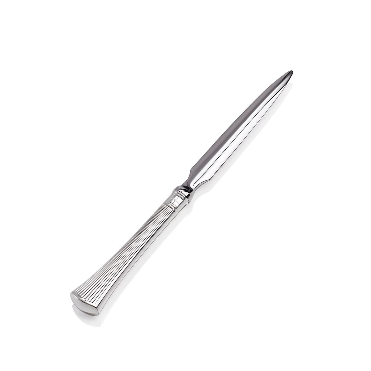 The silverplated "Avenue" letter opener by Robbe & Berking not only exudes simple elegance and timeless beauty, it is also a very practical utensil for a desk. The handle is adorned with handcrafted ribs that are reminiscent of the sculptured surface of ancient columns. This fine relief creates a charming interplay of light and shadow.