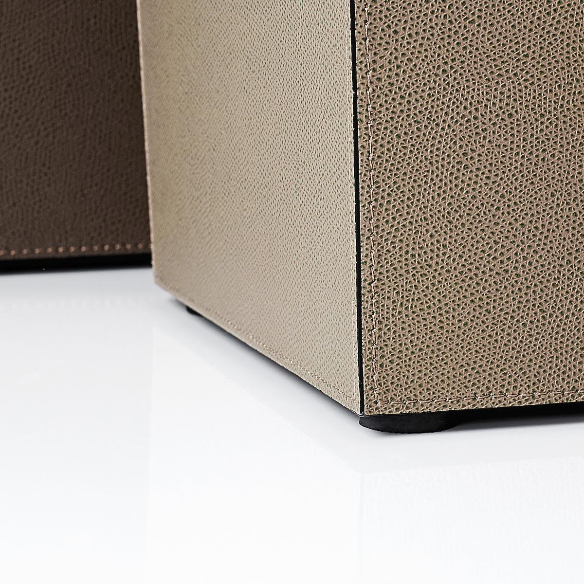 A handcrafted product, the "Gio" waste paper basket by GioBagnara is encased in the finest calf leather. The choice of colours is not limited to the colours shown; you can also order another type of leather and the colour can be selected individually. Even the colour of the stitching can be adapted to meet individual requirements.