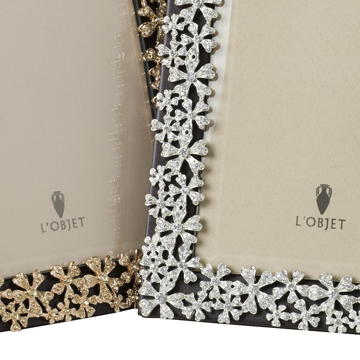 As if in the garden of paradise, heavenly flowers bloom all over the "Garland" picture frame from L’Objet. Bedded on the finest Italian leather, these 24 carat gold-plated flowers are dotted with yellow Swarovski crystals or platinum-plated blossoms with white Swarovski crystals. Some large and sumptuous, some small and delicate, but their glittering blossoms always radiate particularly intensively against the dark, L’Objet frame.