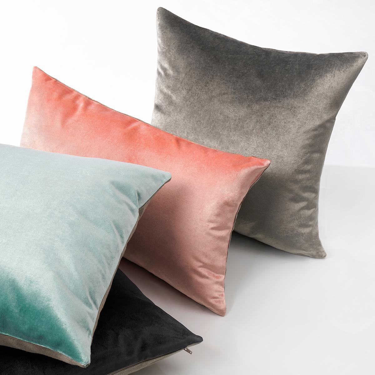 The "Berlingot" cushions from Iosis have two sides to them: the front is of soft shiny velvet, the back of a light linen material. Over a period of time, the velvet side develops a "vintage look" and a pleasant haptic quality.