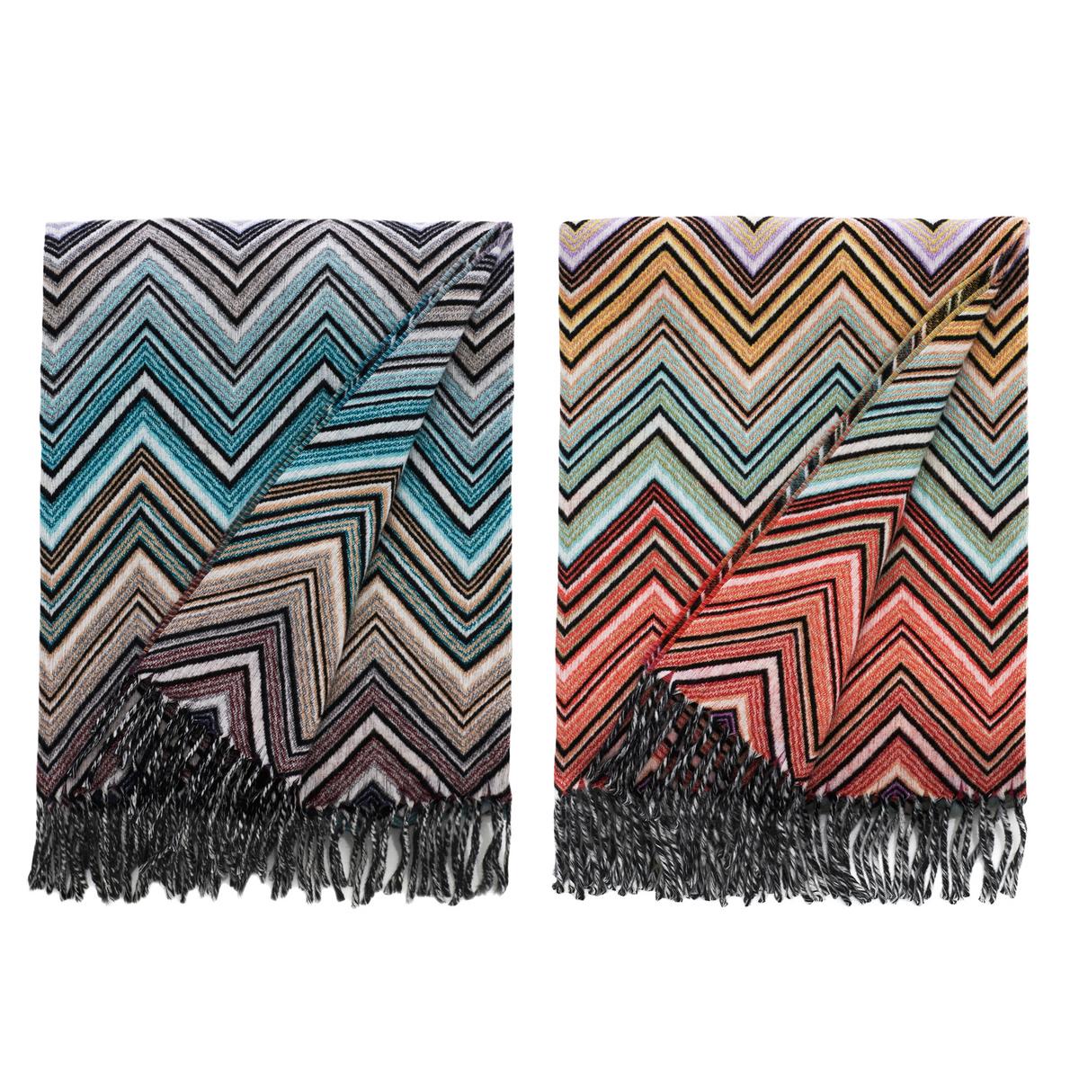 The fashionable colour mix of the "Perseo" blankets from Missoni Home is available in three different colour variations. Soft fringes provide the crowning touch to the 130 x 190 cm blankets.