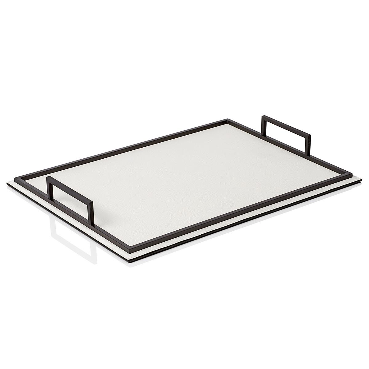 "Defile" rectangular trays, with bronze handles, off white by GioBagnara