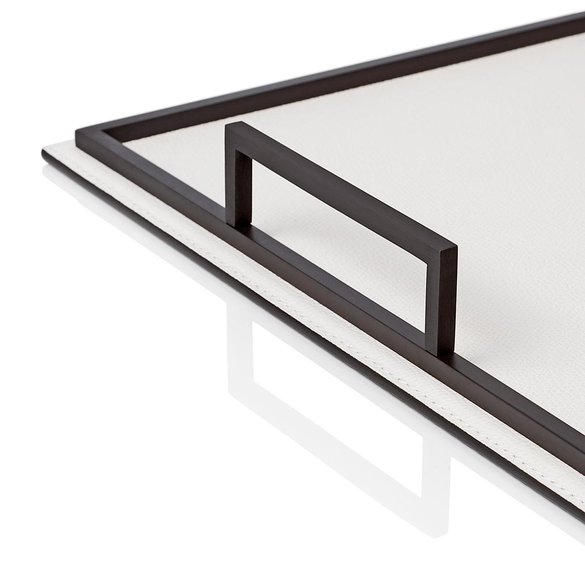The rectangular "Defile" trays by GioBagnara are both handcrafted works of art and elegant serving aids at the same time. They are beautiful examples of the craftsmanship of the Italian manufacturer - each tray is handcrafted in Italy. The leather of the trays is easy to clean with a soft cloth and mild soap. The base of dark-brown suede ensures that the tray does not slip on the surface.