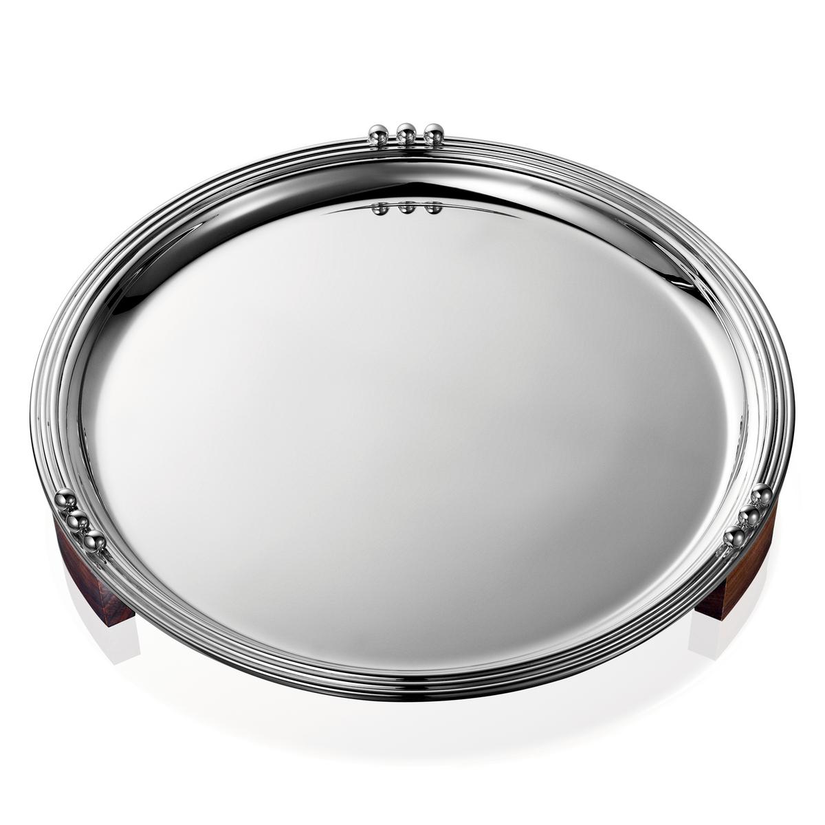 The "Etchéa" tray by Puiforcat is not simply a tray, it is a presentation platform: the delicate silverplated base is mounted on elegant rosewood feet. The edge is decorated with fine grooves and small silver spheres. No matter what the "Etchéa" tray by Puiforcat is carrying, it will always be presented impressively thanks to the tray’s outstanding design.