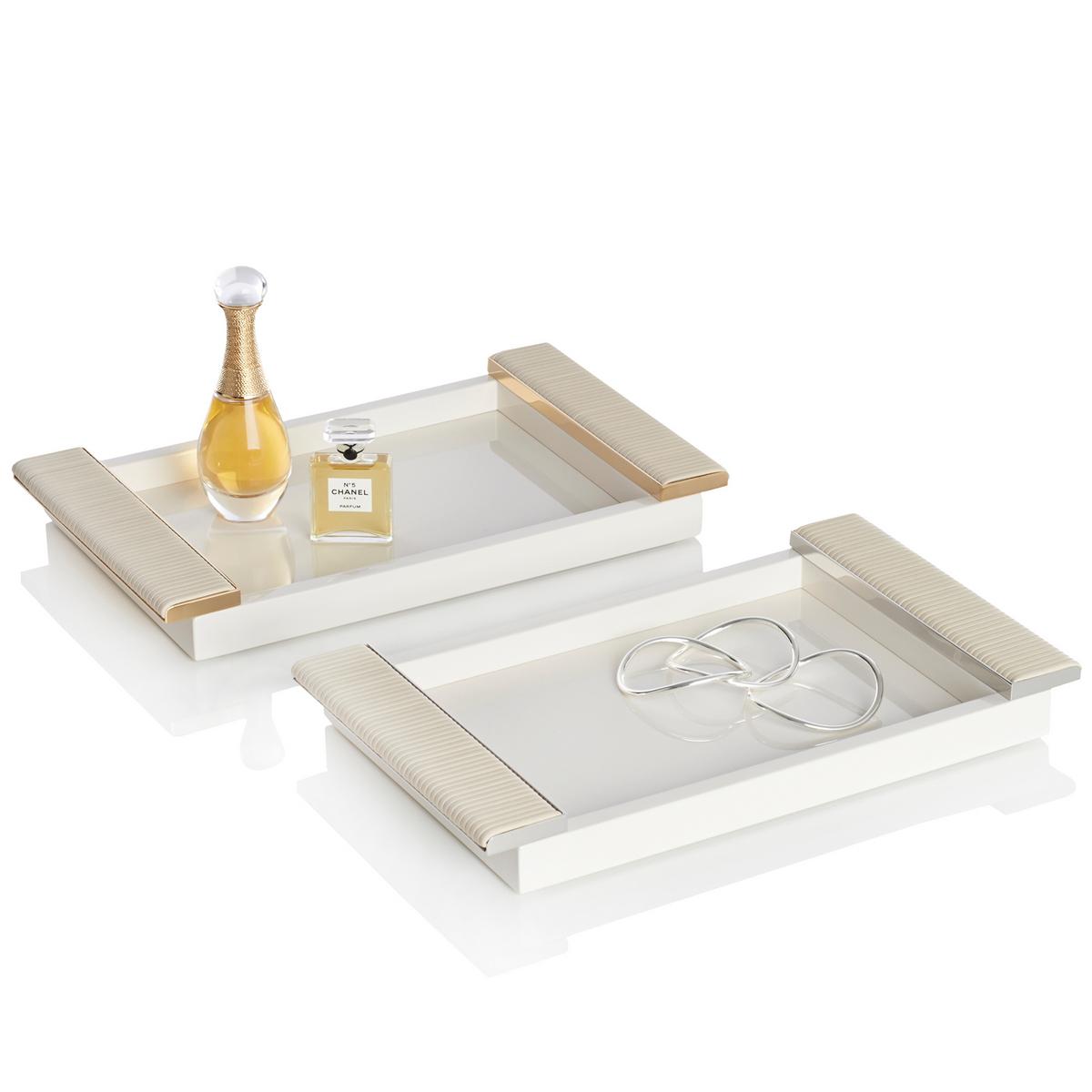 The high-quality finish and luxurious appearance of the "Tesoro" trays by Riviere make them real deco highlights. The hand-lacquered surface adds an additional touch of refinement to these elegant "Tesoro" trays. The handles are chrome-plated or gilded and covered in finest, hand-braided leather.