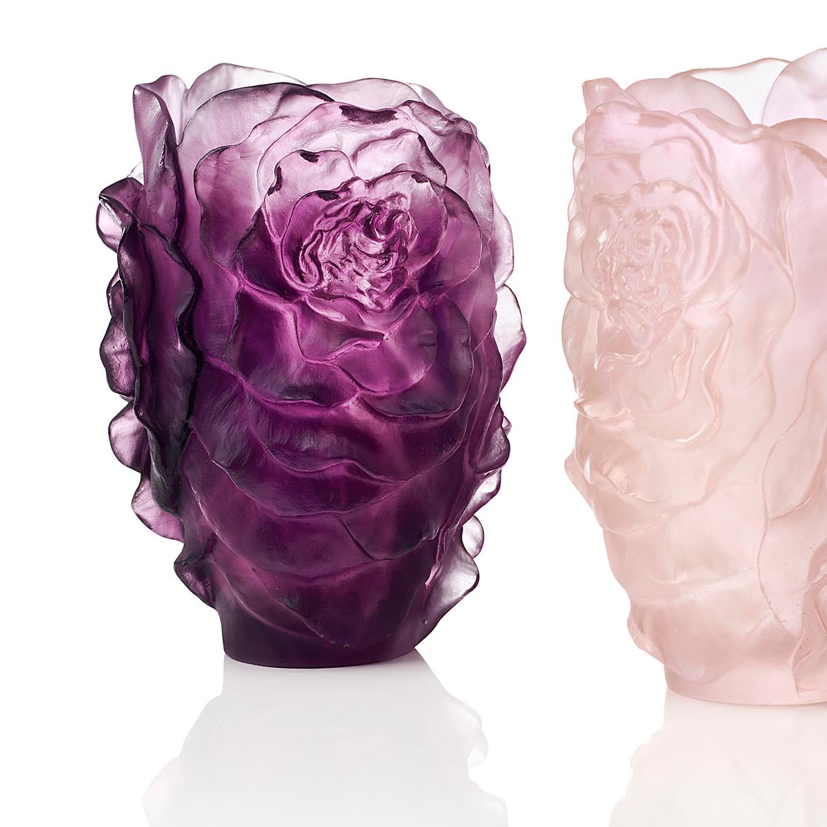 The "Camélia" vases are available in two colours: a subtle powdered pink, a fresh and romantic colour that contrasts with the intense violet, a mysterious and noble tone. The collection also offers the possibility to mix these contrasted colours to create a personalized and elegant ambiance.