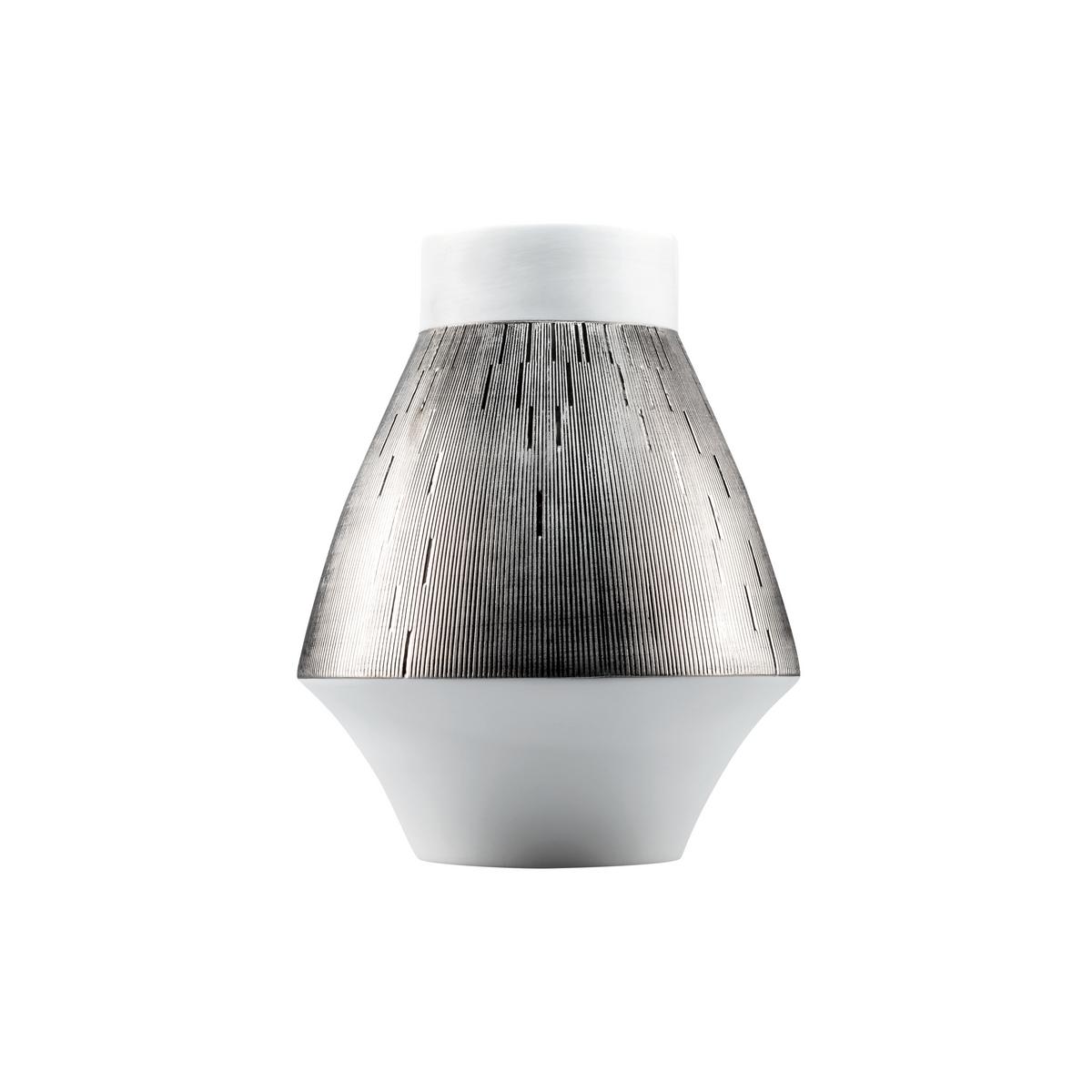 Haviland has extended its portfolio of Limoges porcelain dinnerware with these wonderful vases. The decorative vases have a timeless design. When examined more closely, the "Infini Platinum" vases reveal a radial relief pattern. This pattern is "engraved" into the Limoges porcelain. The "Infini Platinum" vases are made of unglazed Limoges porcelain with velvety platinum refinement. The "Graphic Platinum" vases by Haviland on the other hand are made of gleaming glazed Limoges porcelain with gleaming platinum refinement.
