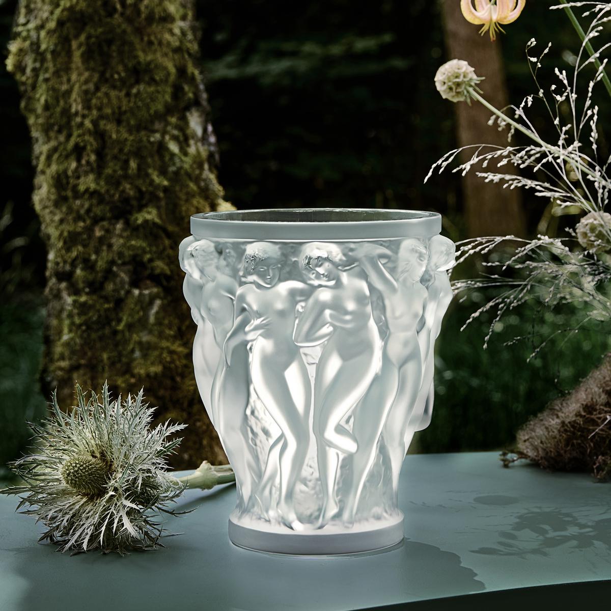 The classic "Bacchantes" vases by Lalique, a symbol of grace and sensuality, continues to be produced in France today. These beautiful Lalique vases, which are 24 centimetres tall and weighs almost 6 kilogrammes, are true masterpieces of timeless modernity, a classic that will always draw people’s attention.