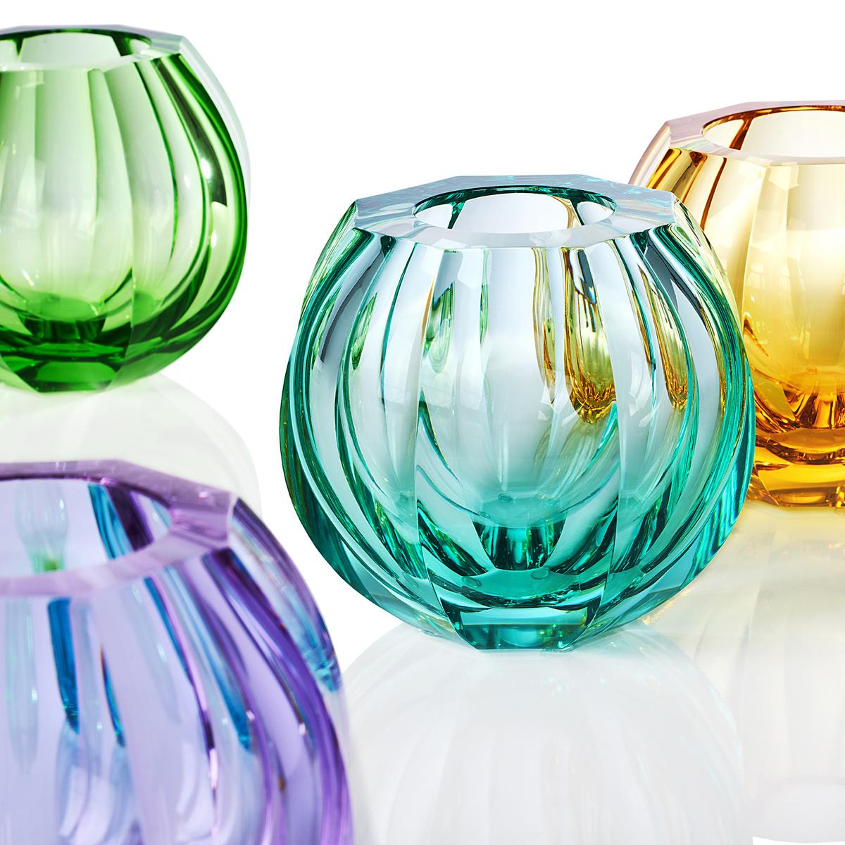 Since 1863, Moser has been producing lead-free crystal glass only. A brilliant colour palette characterizes Moser's creative glass objects. The manufacturer has built an unrivalled know-how in colouring, cutting and engraving this demanding material. Moser’s unmistakable colour palette consists of subtle, almost intangible colours that change in intensity when the objects are turned and rotated.