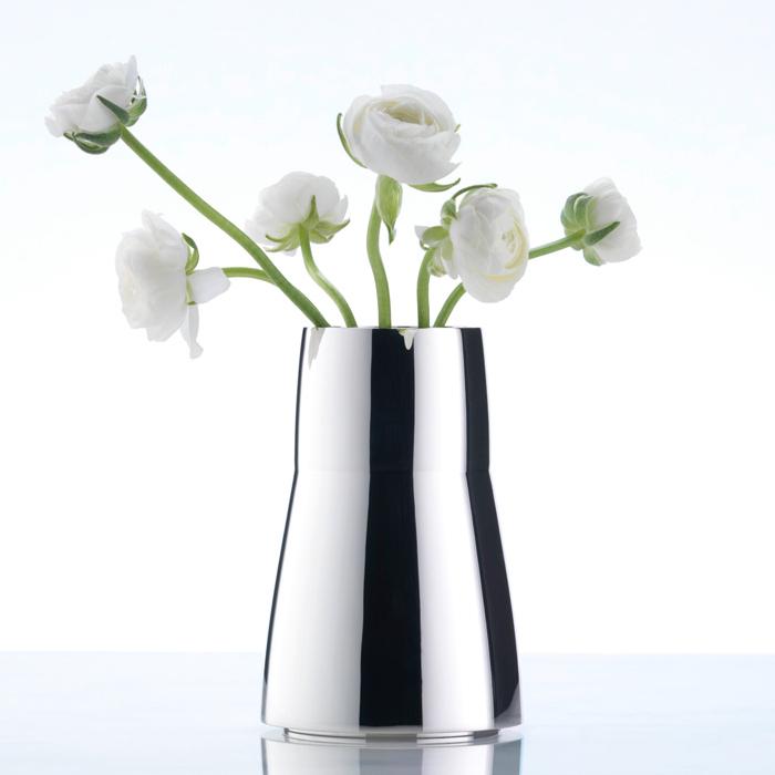A perfectly formed vase: simple, yet also very elegant. The silverplated masterpiece was created by Beate Leonards and rounds off the “Leon” series, which she designed for Robbe & Berking.