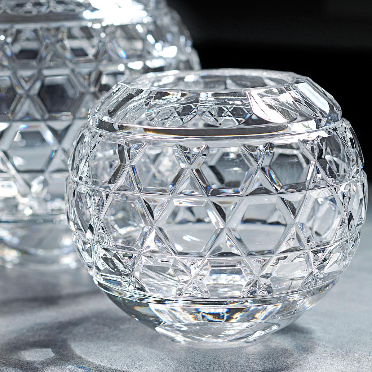 Saint-Louis has been producing chandeliers for customers all over the world since the mid-19th century. Classic designs have been constantly reinvented, and with "Royal", Saint-Louis is venturing a completely new interpretation of these lustrous objects. Luxury crystal glass manufacturer Saint-Louis has used candle drip catchers to create vases, bowls, votives, bonbon dishes and centrepieces. The mouth-blown, hand-cut crystal glass of the "Royal" vases exudes exclusivity.