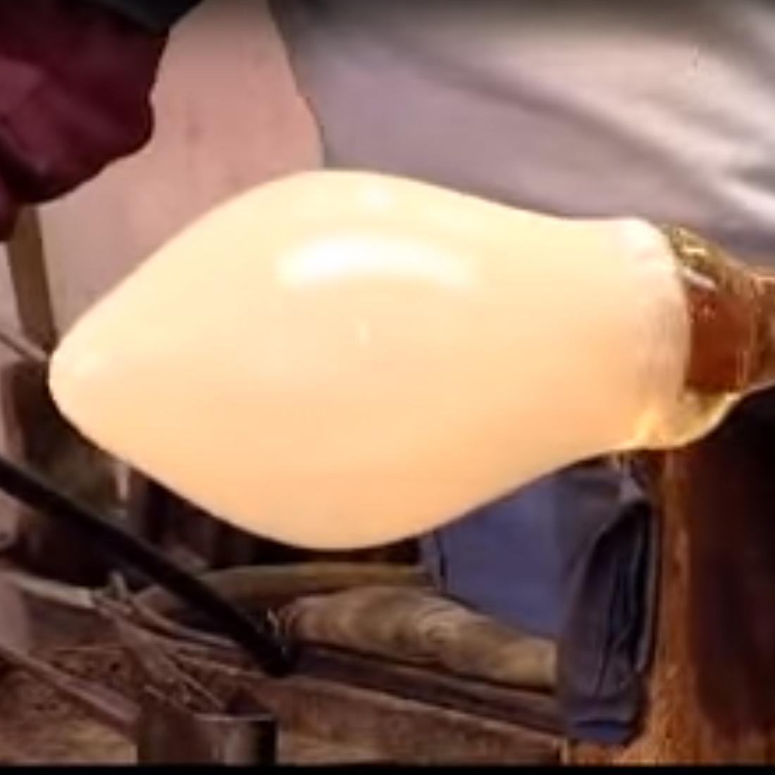 The production of a "Fazzoletti Bicolore" vase by Venini demands a high level of skill and artistry. When the glass master has blown a ball of molten glass, he cuts it open. With a skilled swinging motion, the craftsman forms the vases into a shape that resembles a bunched handkerchief. This also explains the name: "Fazzoletto" means handkerchief in Italian. Each vase from Venini is handmade and thus quite unique. The special feature of the "Fazzoletti Bicolore" vases is their two-tone colour. The exterior surface of the vase shines in a different hue from the one seen on the inside.