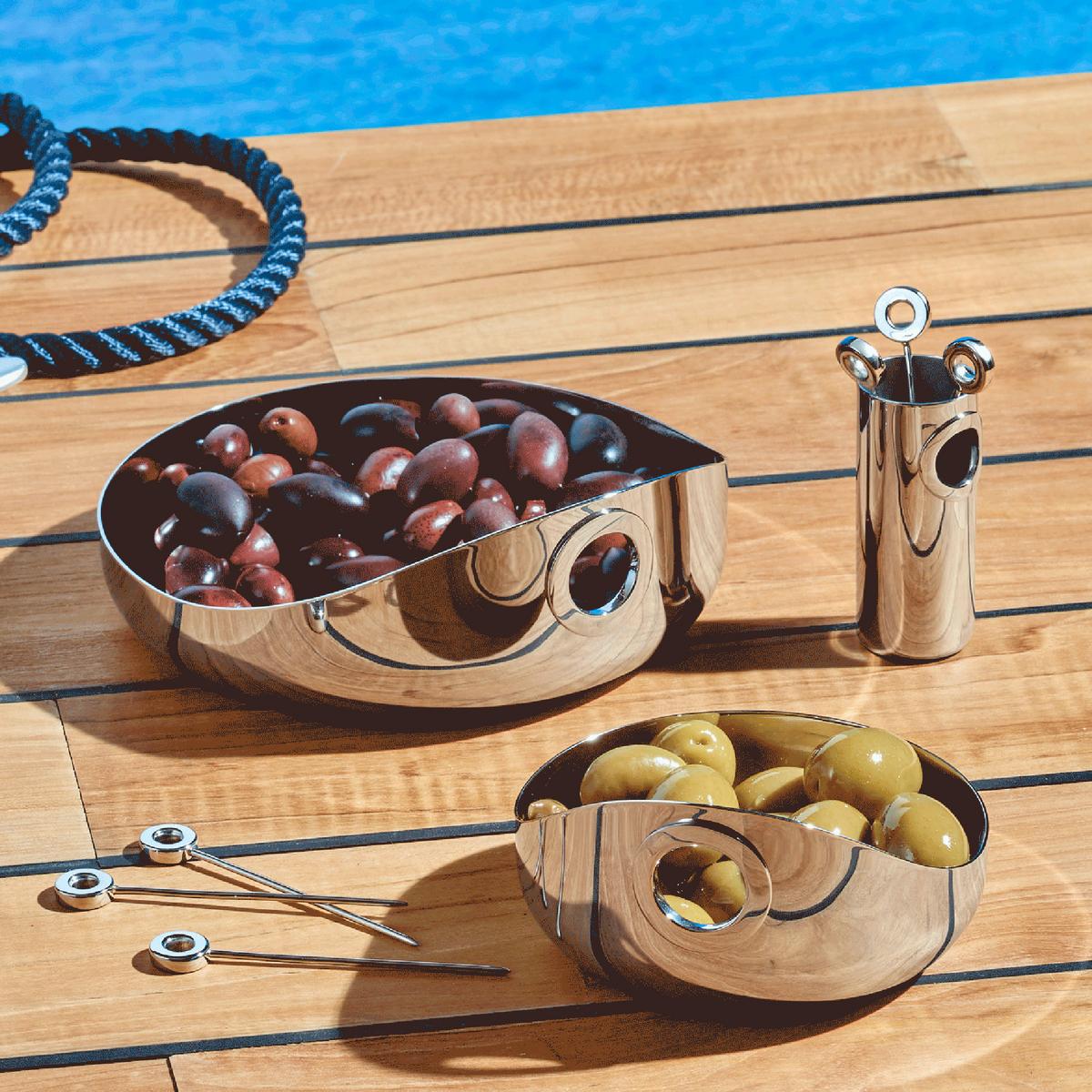 The "Oh" bowls by Christofle are manufactured from high-quality stainless steel in the style of the series of the same name of the well-known French manufactory. The distinctive feature of the timeless and modern "Oh" collection is the round design element: it is based on the circular ship's windows, the so-called portholes. The opening is decorative and provides a haptically pleasant grip.