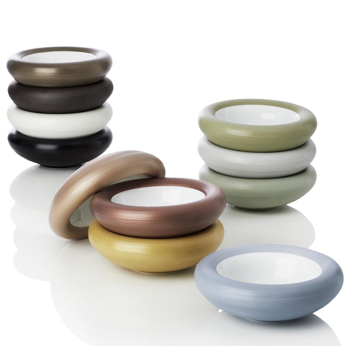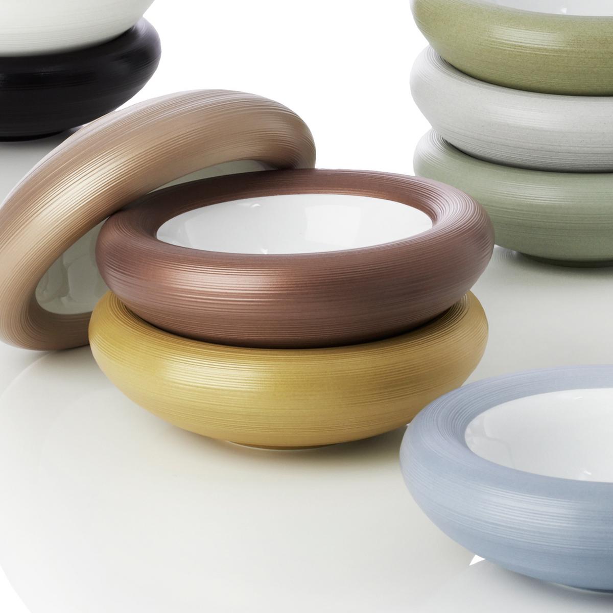 Vanilla, Sepia brown, Rose metallic, Copper: these are just four of the ten extraordinary colours in which the "Hémisphère Bubbles" porcelain bowls by J.L Coquet are available. The "Hémisphère" dinnerware line by J.L Coquet is basically available in all the colours shown here. Please do not hesitate to contact us if you have any further questions.