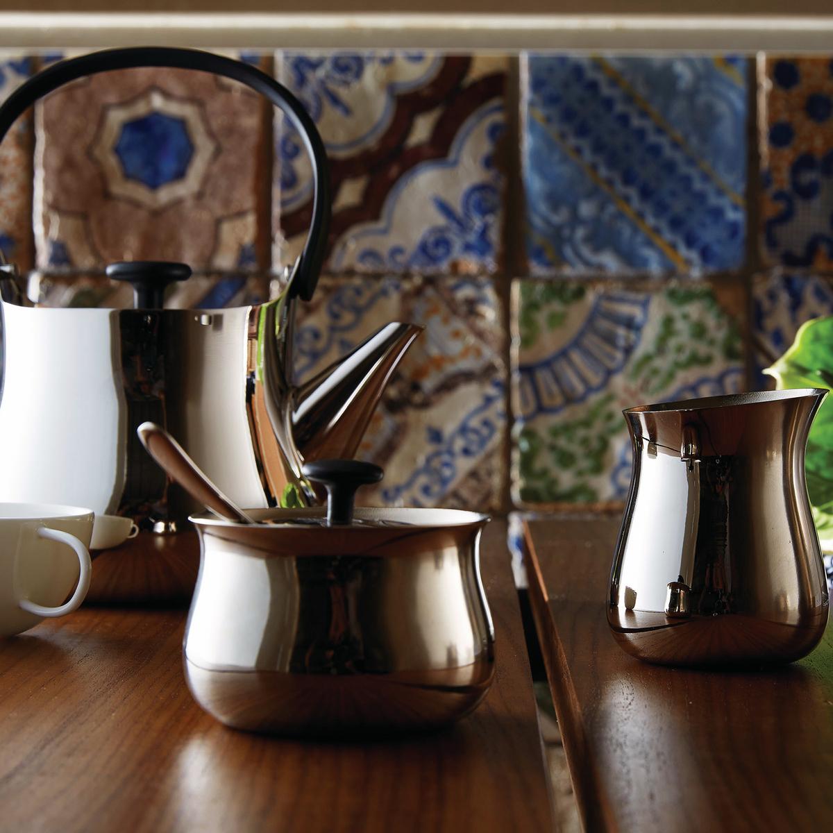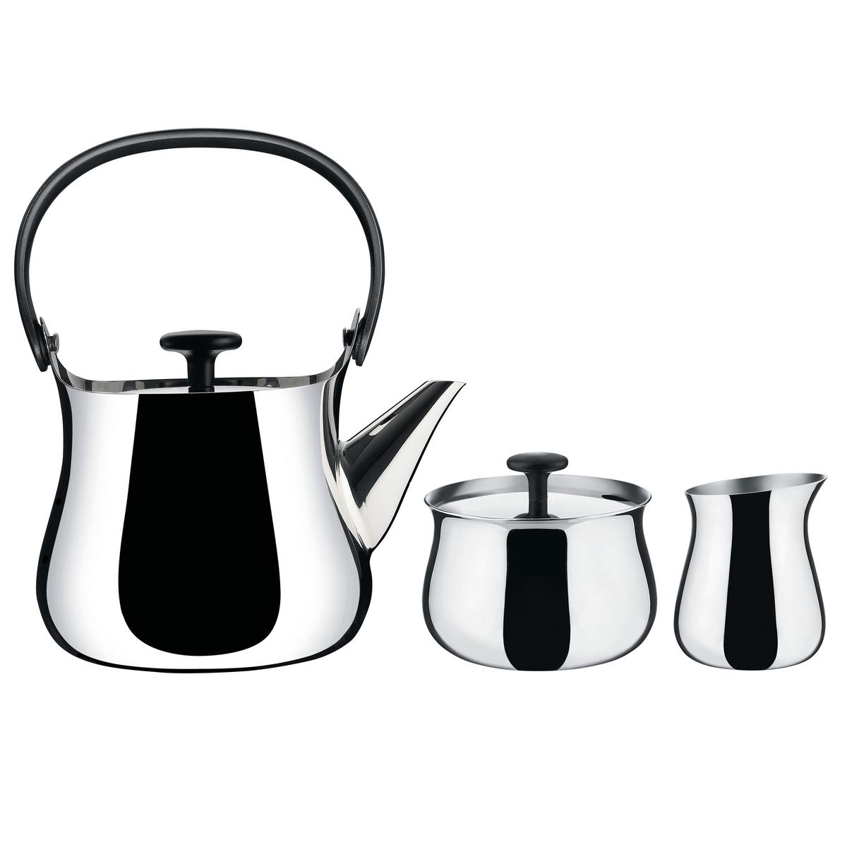 For people who like to drink their tea with milk and/or sugar, there is a matching "Cha" sugar bowl and "Cha" milk jug by Alessi. The design of the milk jug is also well thought out; thanks to its design shape, it sits comfortably in the hand and is practical to use. Without disturbing the overall concept of the design, the barely distinguishable lip outlet ensures that there are no annoying drips from the jug.