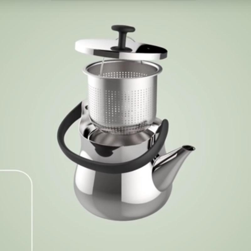 The "Cha" tea service by Alessi is the perfect combination of a kettle and a teapot and is made of durable stainless steel. "Cha" is supplied with a large filter for tea leaves. The magnetic steel bottom is suitable for induction cookers.