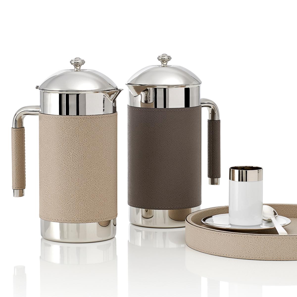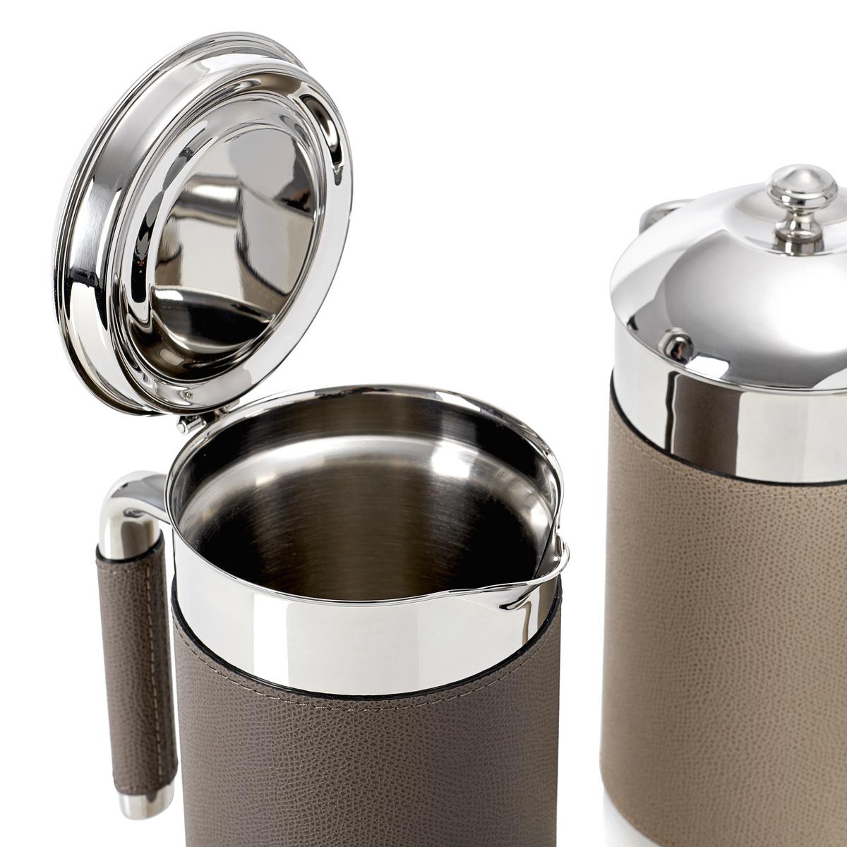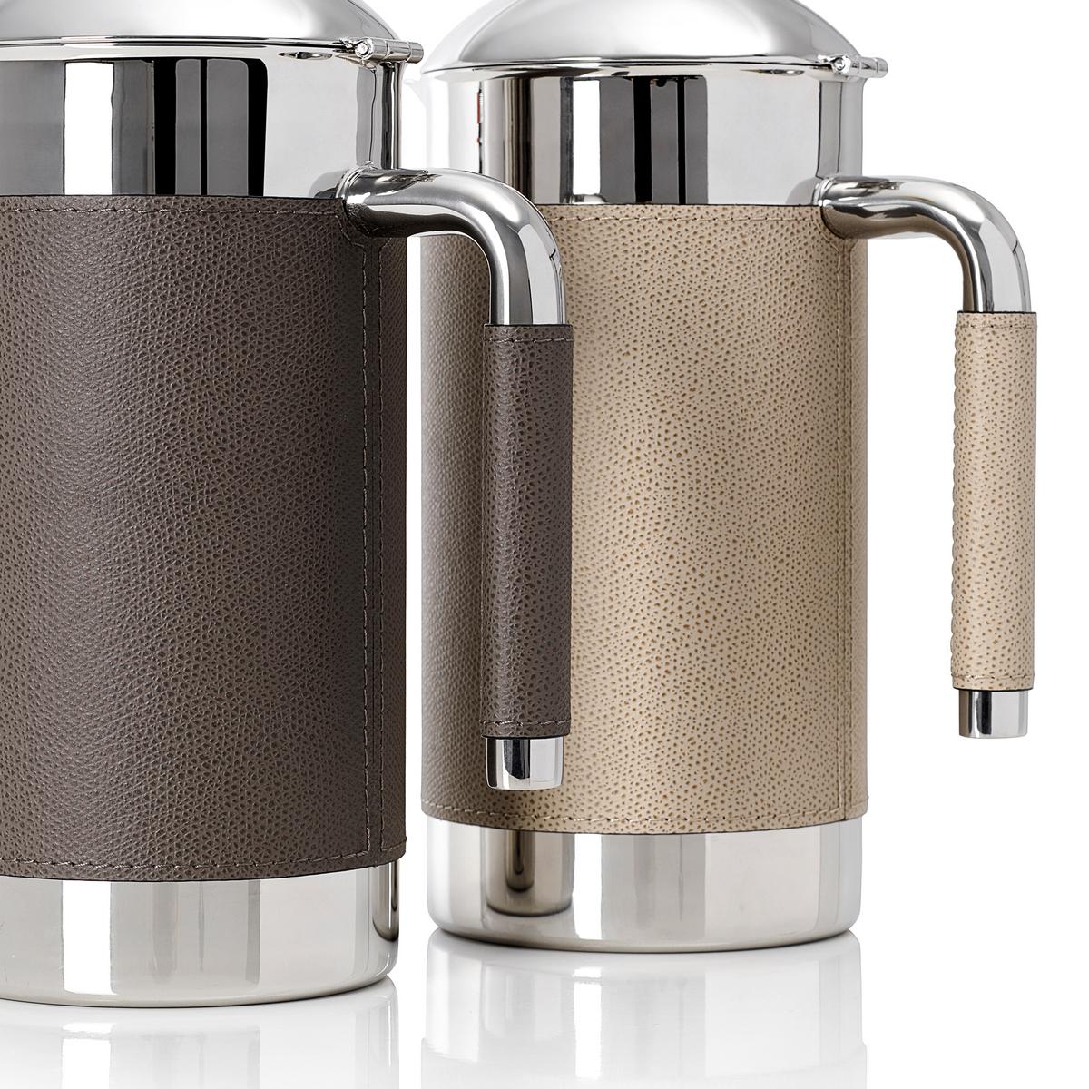 The beautifully shaped "Pacific" thermos flask by GioBagnara could have been taken from another century. But the polished stainless steel and the leather coating give it a modern look. Thanks to the double-walled insulation, liquids are kept warm or cold for much longer.