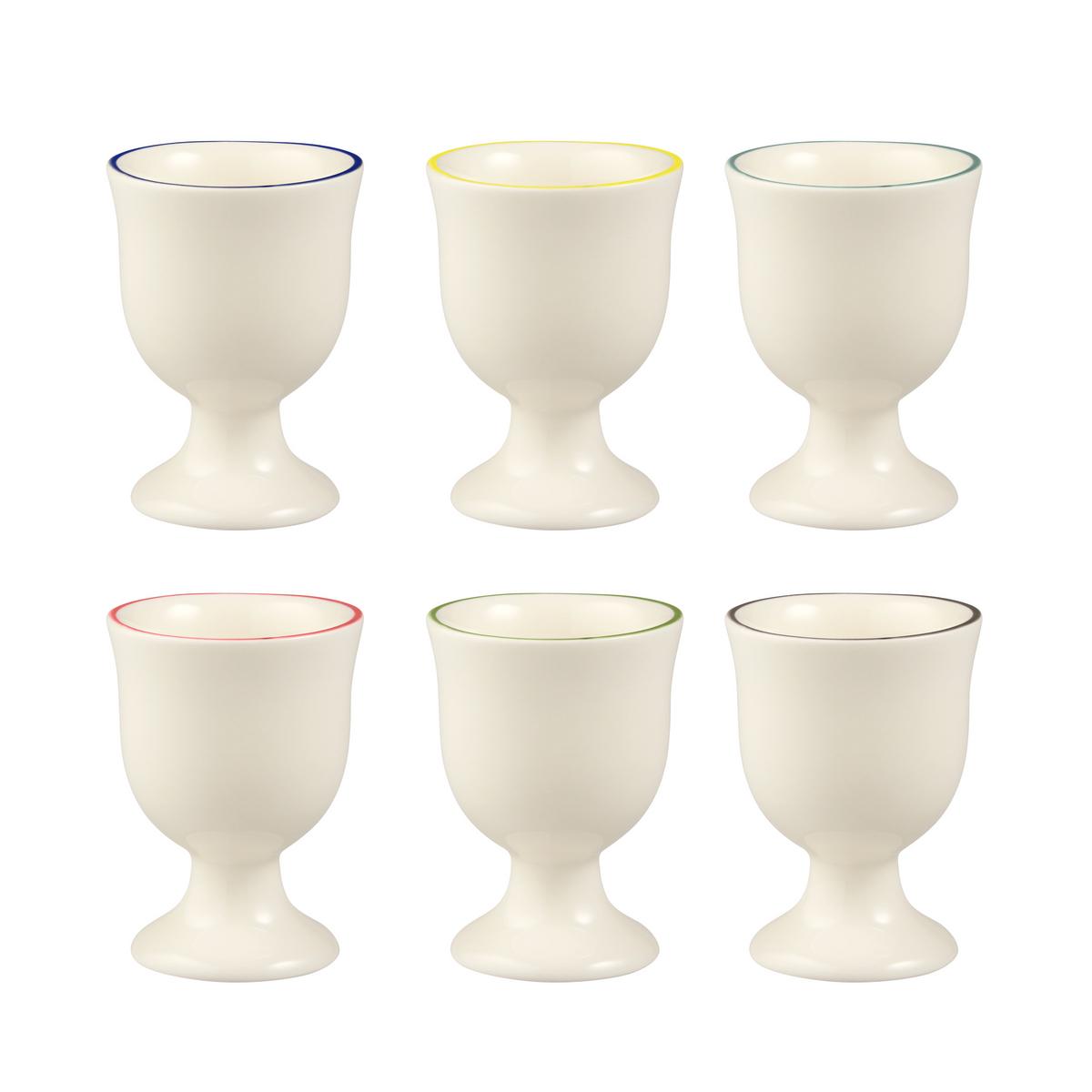 The new egg cups from the "Filets" collection by Gien complement the popular dinner service with their simple, elegant shape. Made from ecru-coloured faience and decorated with hand-painted lines in delicate colours, they bring French country house flair to the breakfast table. The classic shell shape and fine craftsmanship make them a stylish highlight for every morning.