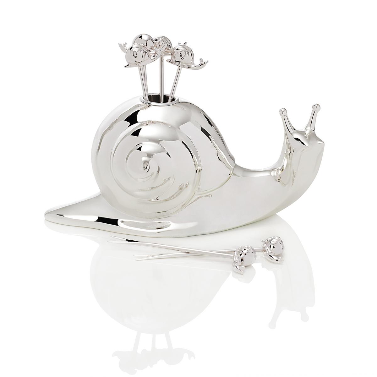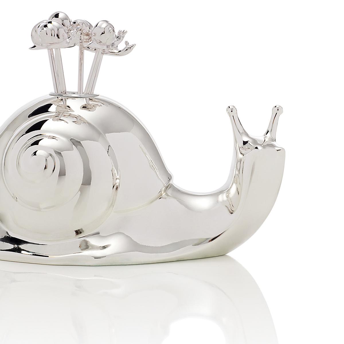 This Ercuis set of eight snail forks or cocktail sticks safely stored in the silverplated shell is not only practical, but also makes an imaginative addition to a table decor.