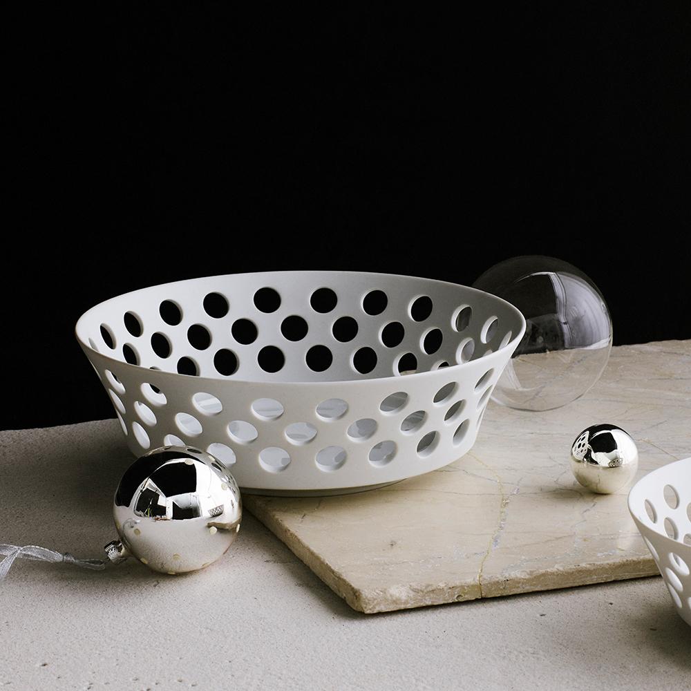 Hering Berlin's perforated bowls are equally beautiful as a decorative ornament and highlight the pure magnificence of porcelain.