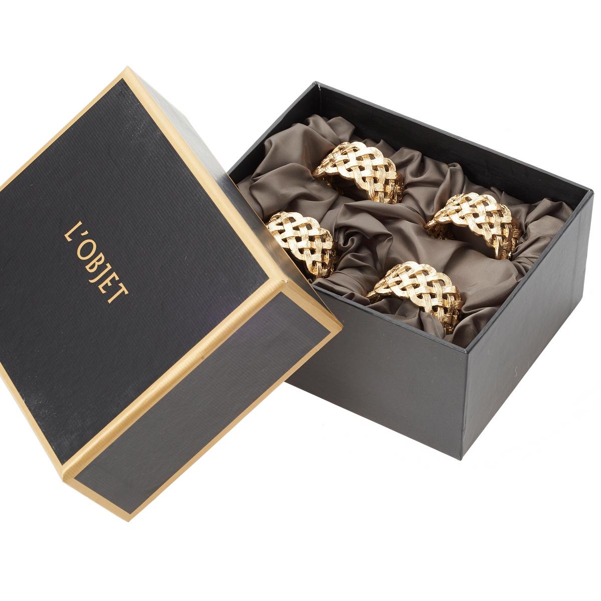 Even the black and gold gift box in which the "Braid" napkin rings are delivered is made with such care for detail that it would be a shame not to put it to some further use.