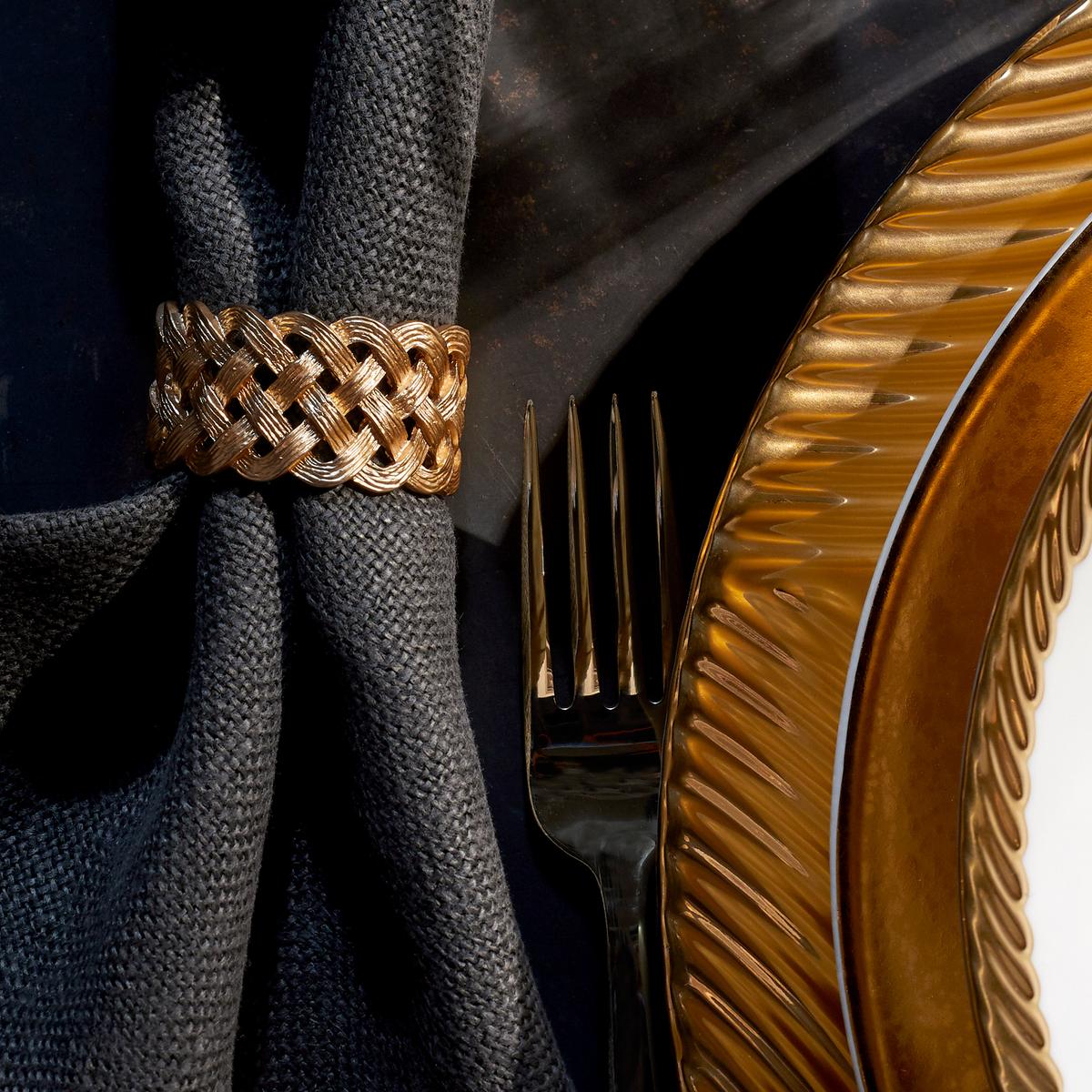 When you see the "Braid" napkin rings from L’Objet lying on the dining table, your automatic reaction is that someone must have left her jewellery behind. The napkin rings look just like luxury bracelets. The gold- or platinum-plated brass bracelets appear like a series of interwoven strands which can fit themselves smugly around every napkin. The "Braid" napkin rings are made with the greatest care and skilled hand craftsmanship by L’Objet.