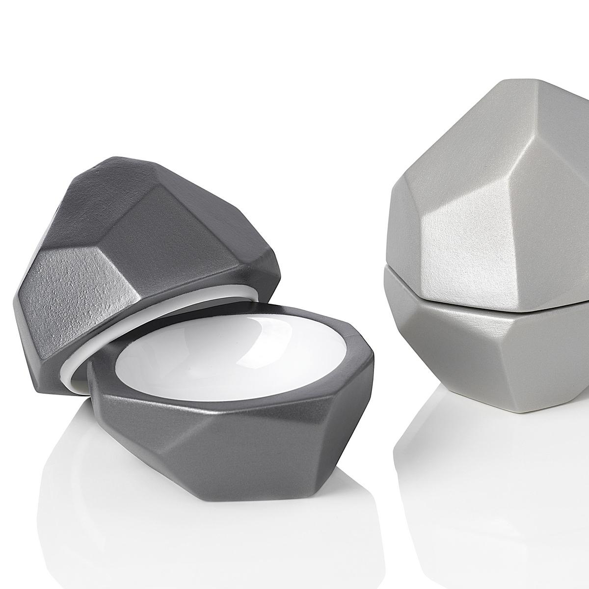 Perfect for serving salt & pepper are the "Pépites" dishes from Raynaud. The rock pieces are glazed on the inside and velvety matt on the outside. The small gemstones are also suitable for serving olives, capers, butter, olive oil or other small delicacies.