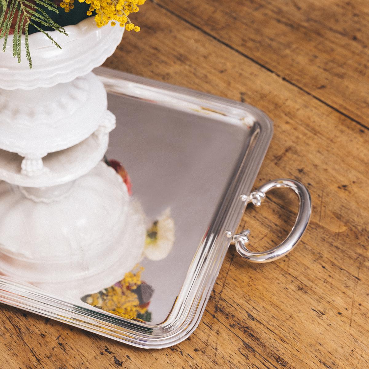 The Christofle’s silverplated "Albi" trays with handles are guaranteed to make a strong impression whatever the venue: regardless whether bringing in a complete meal, the desserts or some Champagne flutes. They are available in two different sizes. The sturdy handles also mean the Christofle trays are both easy and secure to carry.