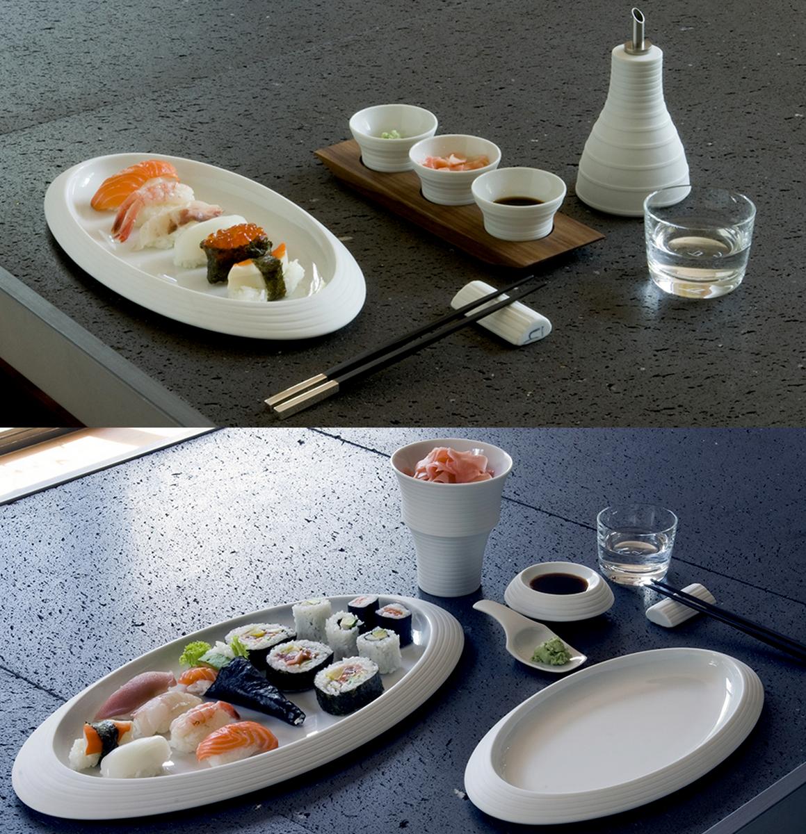 "Pulse" by Hering Berlin becomes "Pulse" for Sushi. The dinner service is just very flexible and adapts to different cultures. Thus, besides its convincing performance for western dishes, it also offers a dream solution for the Japanese sushi dishes. Try it out.