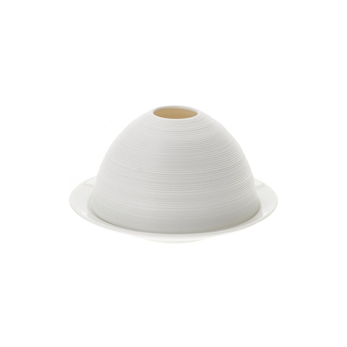 To achieve the pure white colour and outstanding quality of the porcelain, the porcelain paste matures for up to three months in the cellar of the manufactory before it undergoes around 20 manual work steps. The hand-drawn grooves are protected by a special mineral mask that is as robust as a traditional glaze while preserving the biscuit-like appearance of the porcelain. "Hémisphère White" is scratch-resistant, microwaveable and dishwasher-safe, making it ideal for professional and everyday use.