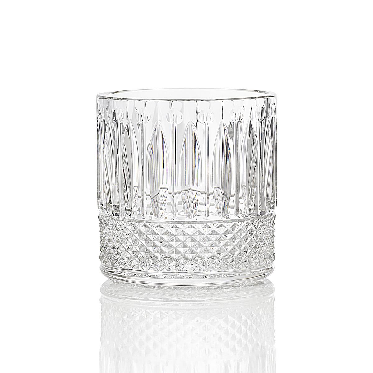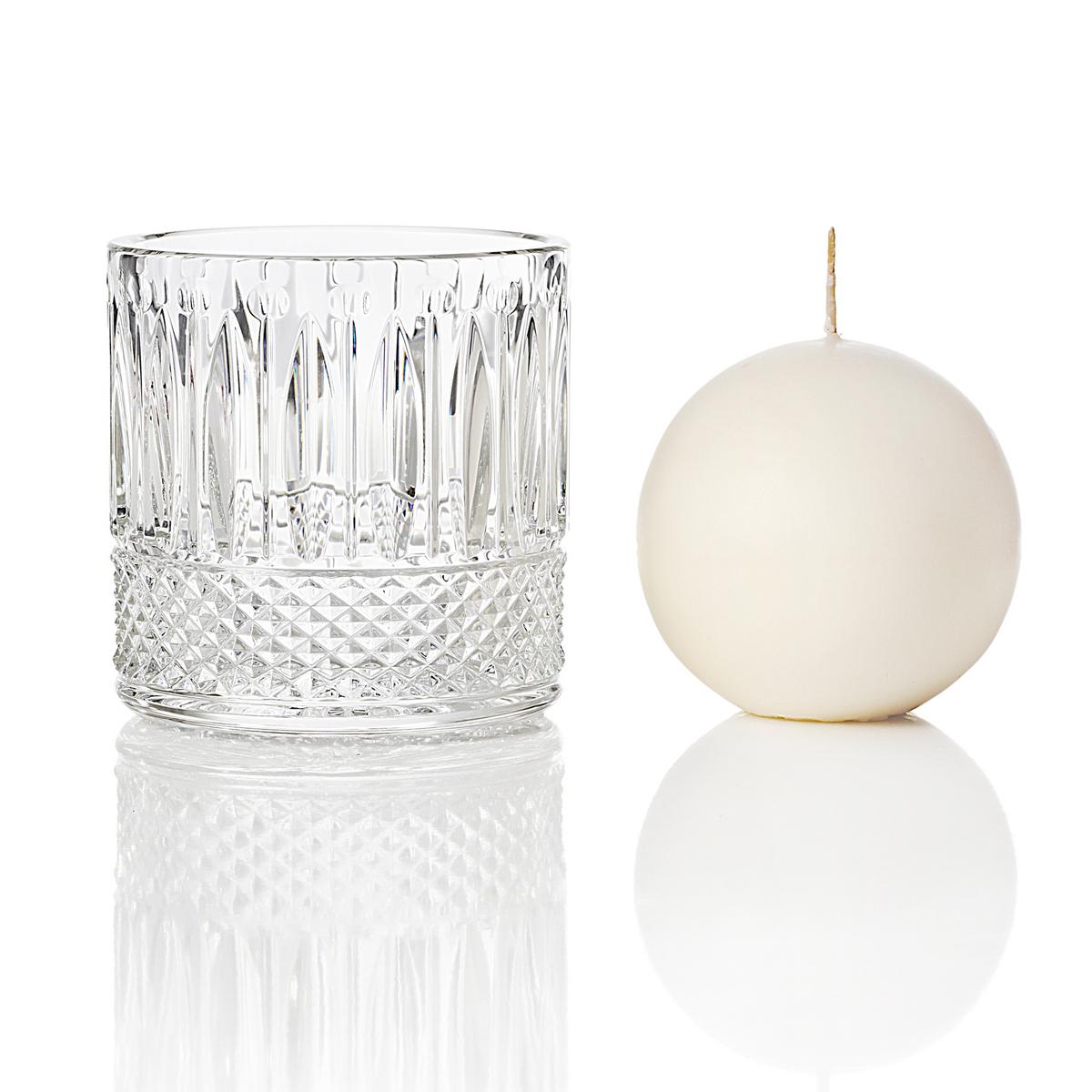 This "Tommy" votive beautifully complements the "Tommy" collection from Saint-Louis. The votive is a model example of perfect handcraftsmanship and finest crystal glass from Saint-Louis. The crystal glass has a unique relief surface thanks to the facet, lens and diamond cut. When a tea light is lit in the "Tommy" votive, the beautifully cut crystal glass reflects the flame in hundreds of little highlights.