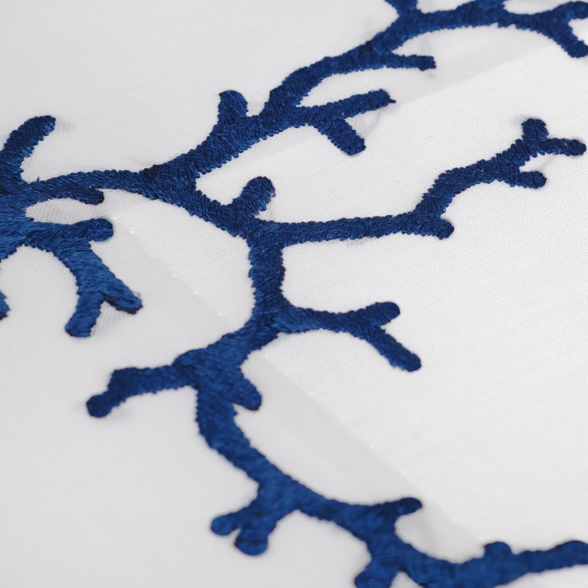 Each piece is hand-embroidered – an intricately worked cotton masterpiece. The "Coral Marine" table linen include napkins, place mats and runners.