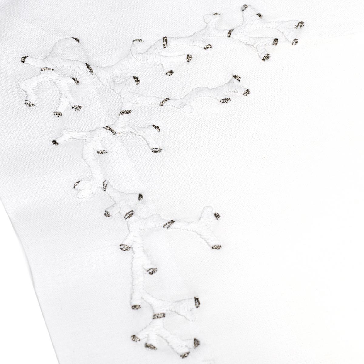 This "Coral white & silver" table linen conjures up South Pacific feeling. The embroidered white coral has refined silver accents. The understated elegance ensures that this cotton table linen from Eri Textiles can be successfully combined with all kinds of table decor.