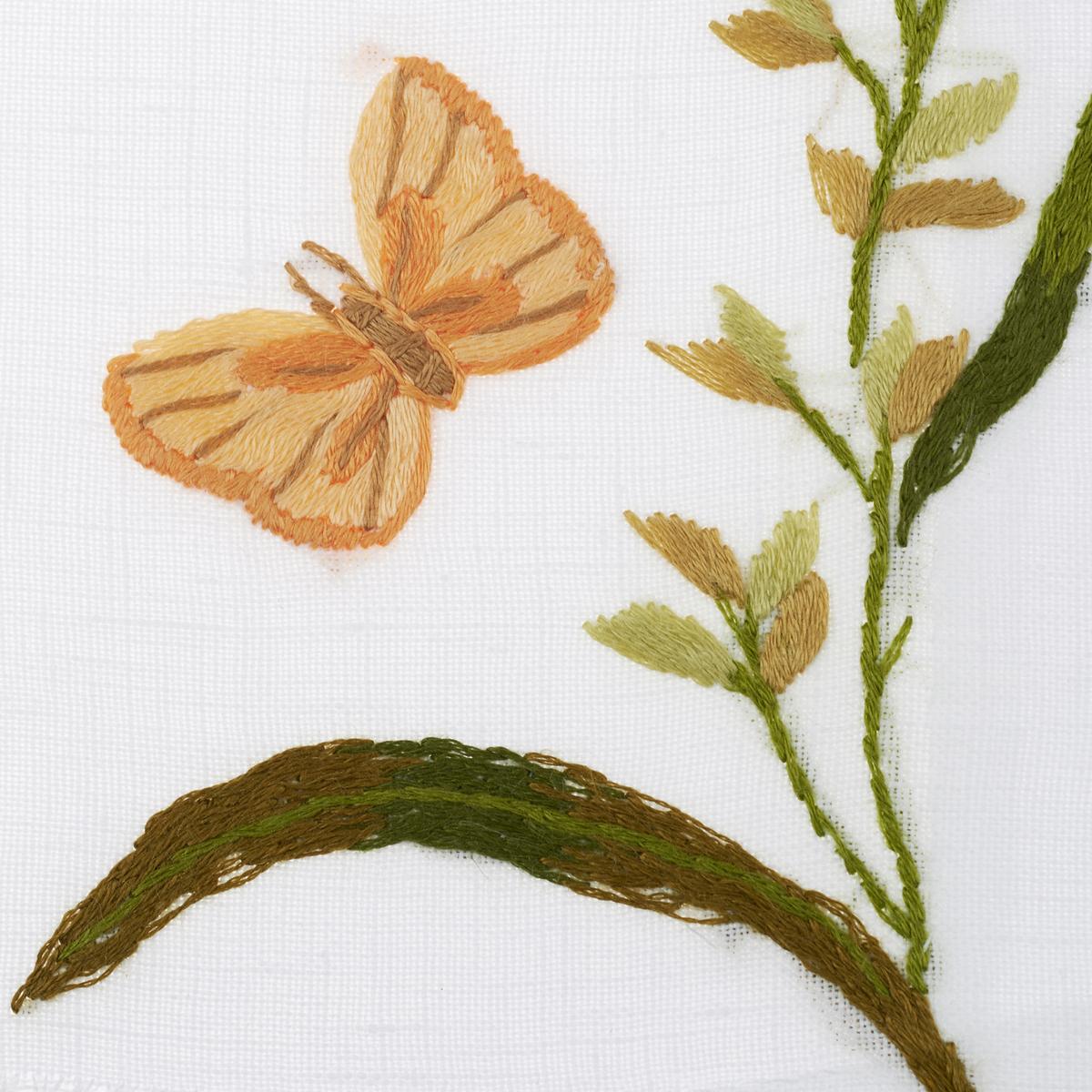 The "Green Meadow" table linen by Eri Textiles charms with a summery motif. Blue and orange butterflies flutter over the green grasses of the meadow and recall some light-hearted childhood memories.