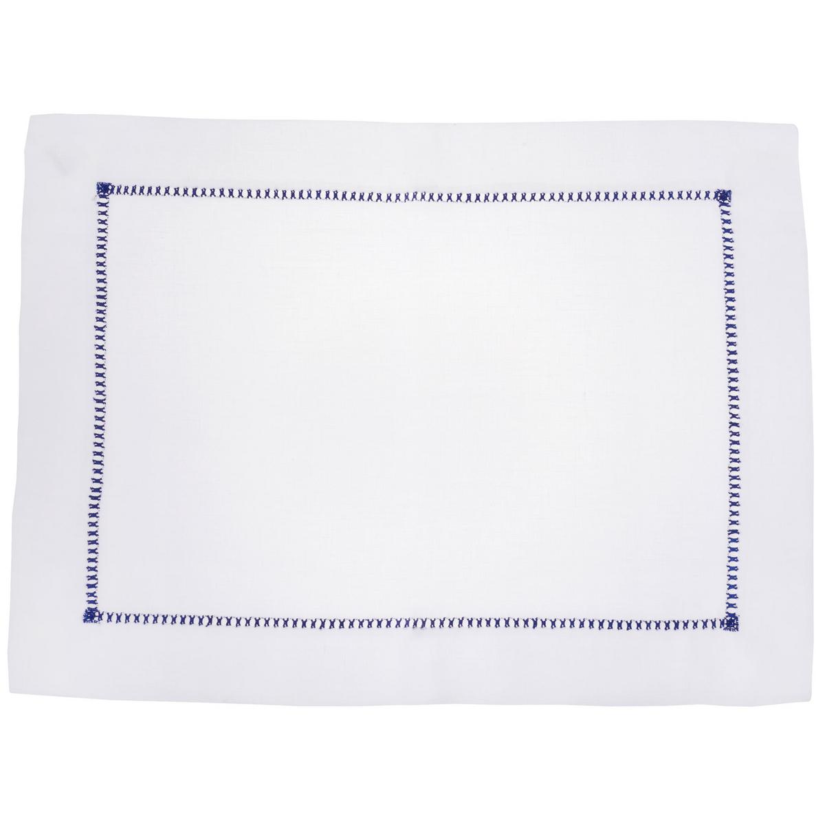The high-quality "Hemstitch Navy" table linen by Eri Textiles is noble and maritime. The white linen and the elaborately hand-embroidered blue hemstitch look fresh and light. Due to the simple design, the table linen can be used in many ways.