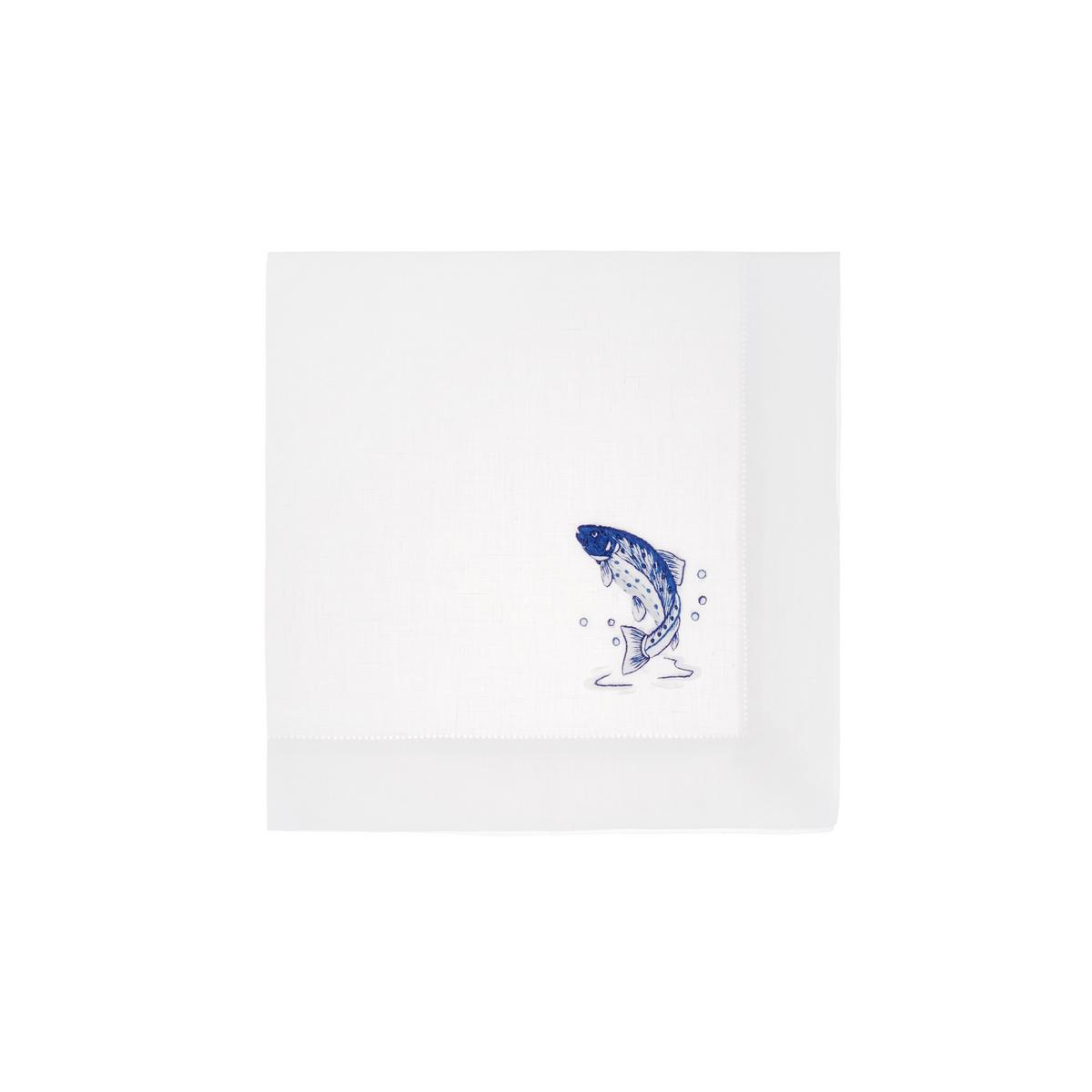 The "Trout" linen table linen by Eri Textiles is elegant and maritime. The white linen and the elaborately hand-embroidered fish motif in blue look fresh and light - perfect for a fish dinner. The table linen made of 100% pure linen was designed by the company founder Erika Lassen. The Bavarian company Eri Textiles produces all its table linen by hand, making each piece unique.