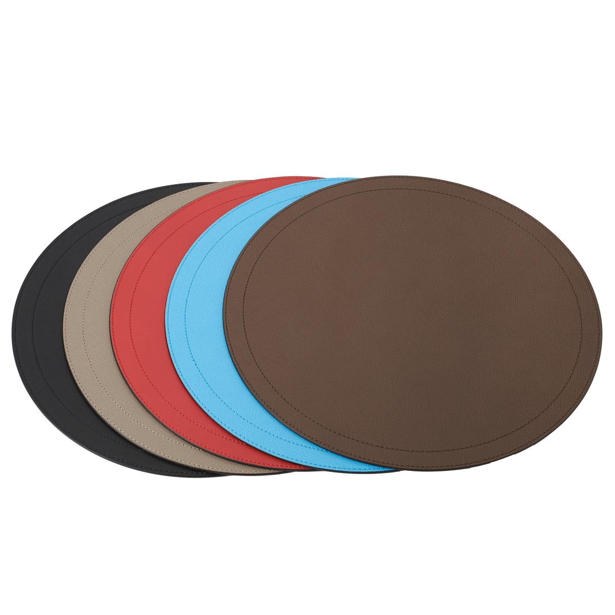 The round leather "Athena" place mats from GioBagnara can be used to complement both a classic and modern interior. Round place mats are particularly suitable for round or oval tables. The coloured stitching of the GioBagnara place mats is an attractive detail as is the dark leather used on the back.