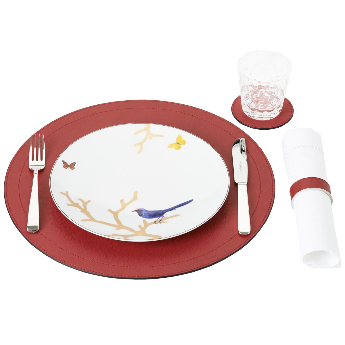 The leather is available on request in further colours. Simply enquire with us. The round glass "Troia" coasters from GioBagnara go well with the round place mats.