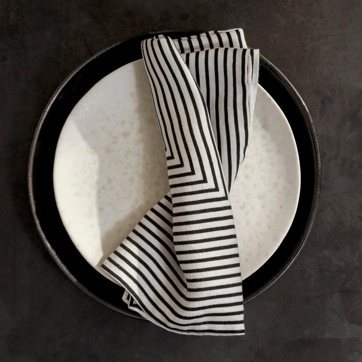 Quality table linen adds to the elegance of a dining room. The "Concorde" table linen by L'Objet offers napkins and tablecloths in two sizes. The striped pattern in the combination of black and ecru is simple yet expressive. The "Concorde" collection offers the possibility to be combined with the "Sateen" table linen by L'Objet. Both collections can be perfectly matched.