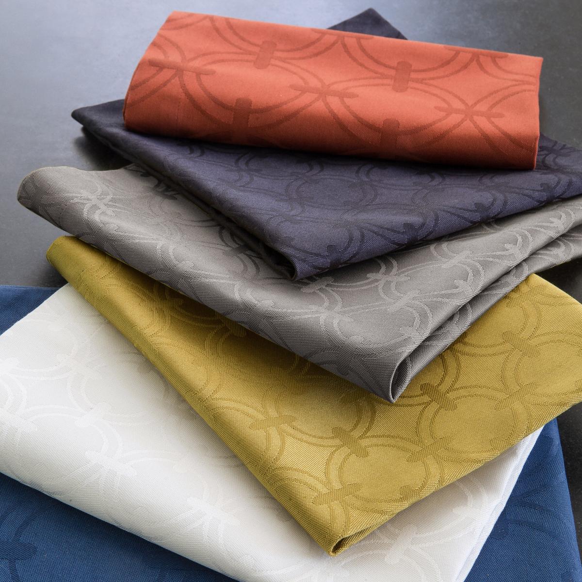 The plain "Anneaux" table linen by Le Jacquard Francais is a classic model from the French weaving manufacturer. A geometric chain link motif plays the main role. The modern pattern is woven tone-in-tone. The plain-coloured "Anneaux" table linen is made of 100% pure cotton. The warm colours conjure up a cosy atmosphere on the table.