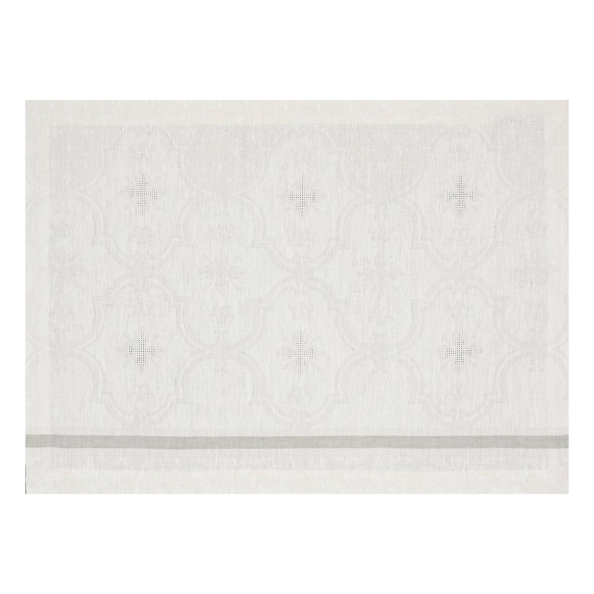 The "Armoiries" table linen is a tribute to the exceptional skills of the house Le Jacquard Francais. Arabesques and acanthus leaves give the table linen an elegant look. The colour tones are deliberately kept neutral and timeless: the strength of black, the comfort of gray, the freshness of blue and the purity of white. The table linen "Armoiries" is available in these four colours.