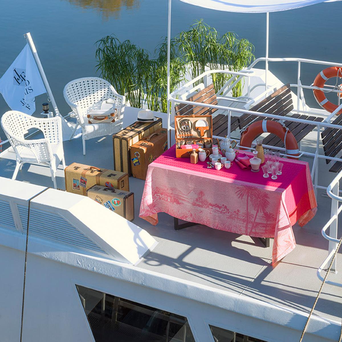 "Croisière sur le Nil" table linen, orchid by Le Jacquard Français