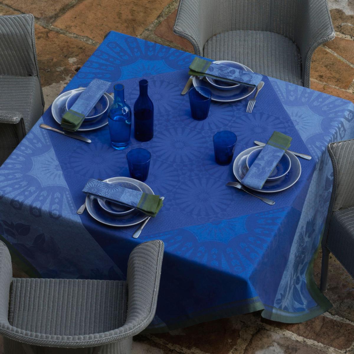 "Jardin d'Orient" table linen, blue by Le Jacquard Français