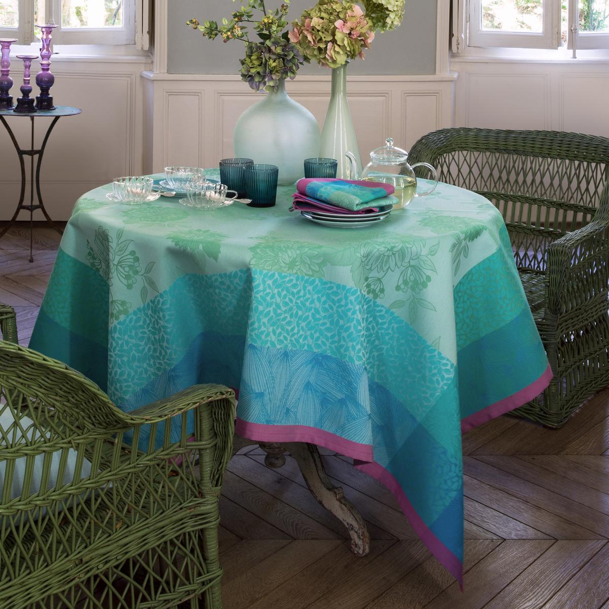 "Parfums de Bagatelle" table linen, hydrangea by Le Jacquard Français