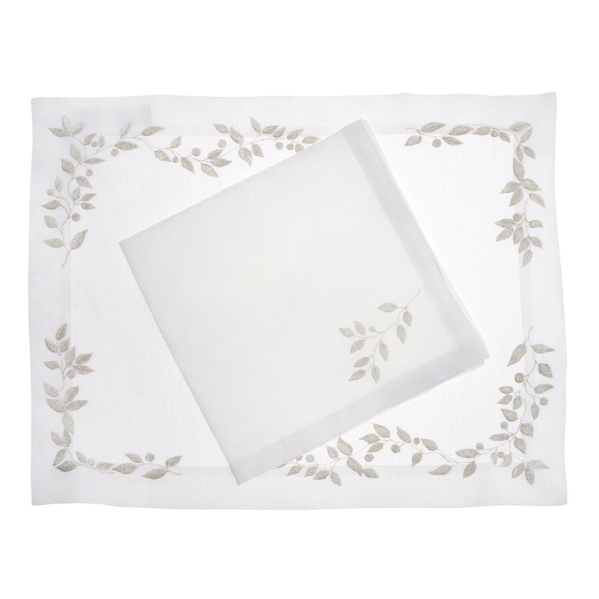 "Feuilles d'Olivier" linen place mat, silverItem no. 6264615'' x 19''Discontinued product, only 12 piece(s) available, delivery time approx. 2-3 working daysUS $ 205.03MSRP
